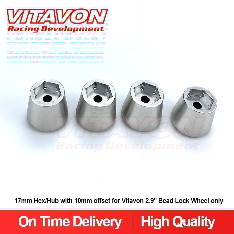 The Hubs are made of high quality aluminum7075, 17mm hex with 10mm offset, works with VITAVON 2.9″ wheels only sells 4pcs as set.