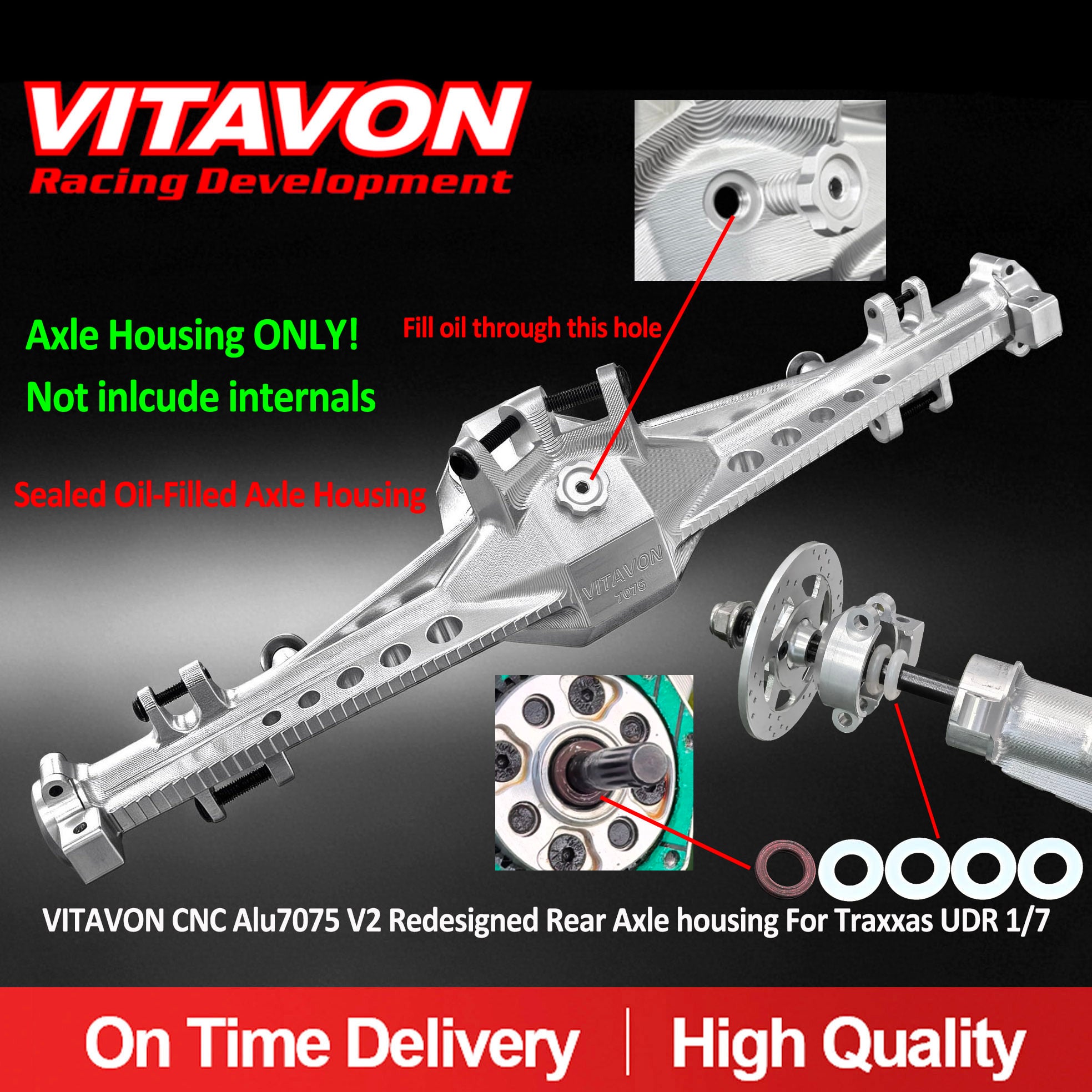 Product Name:VITAVON CNC Alu7075 V2 Rear Axle Housing for Traxxas UDR 1/7