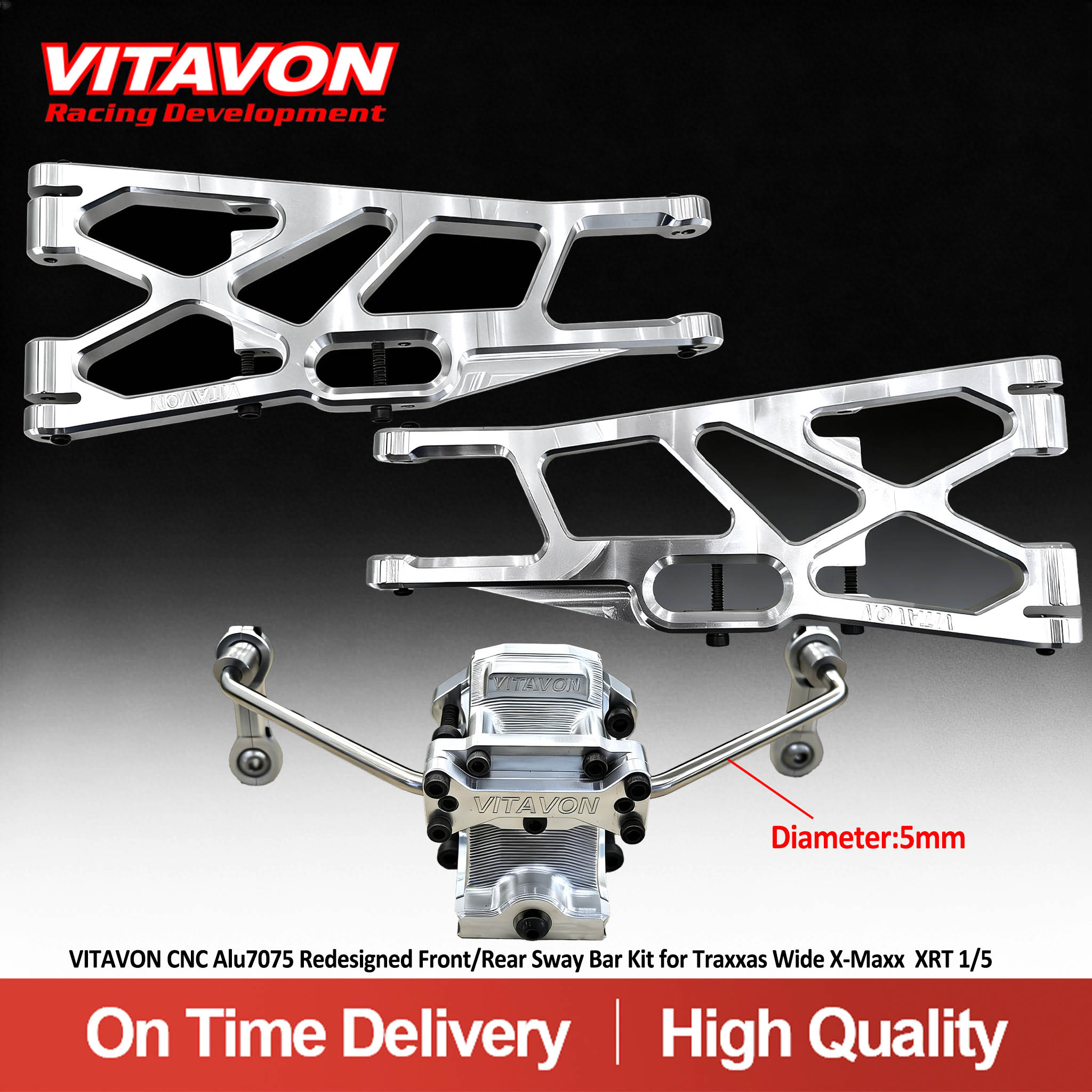 Product Name: VITAVON CNC Alu7075 Redesigned Front/Rear Sway Bar Kit for Traxxas Wide X-Maxx XRT 1/5