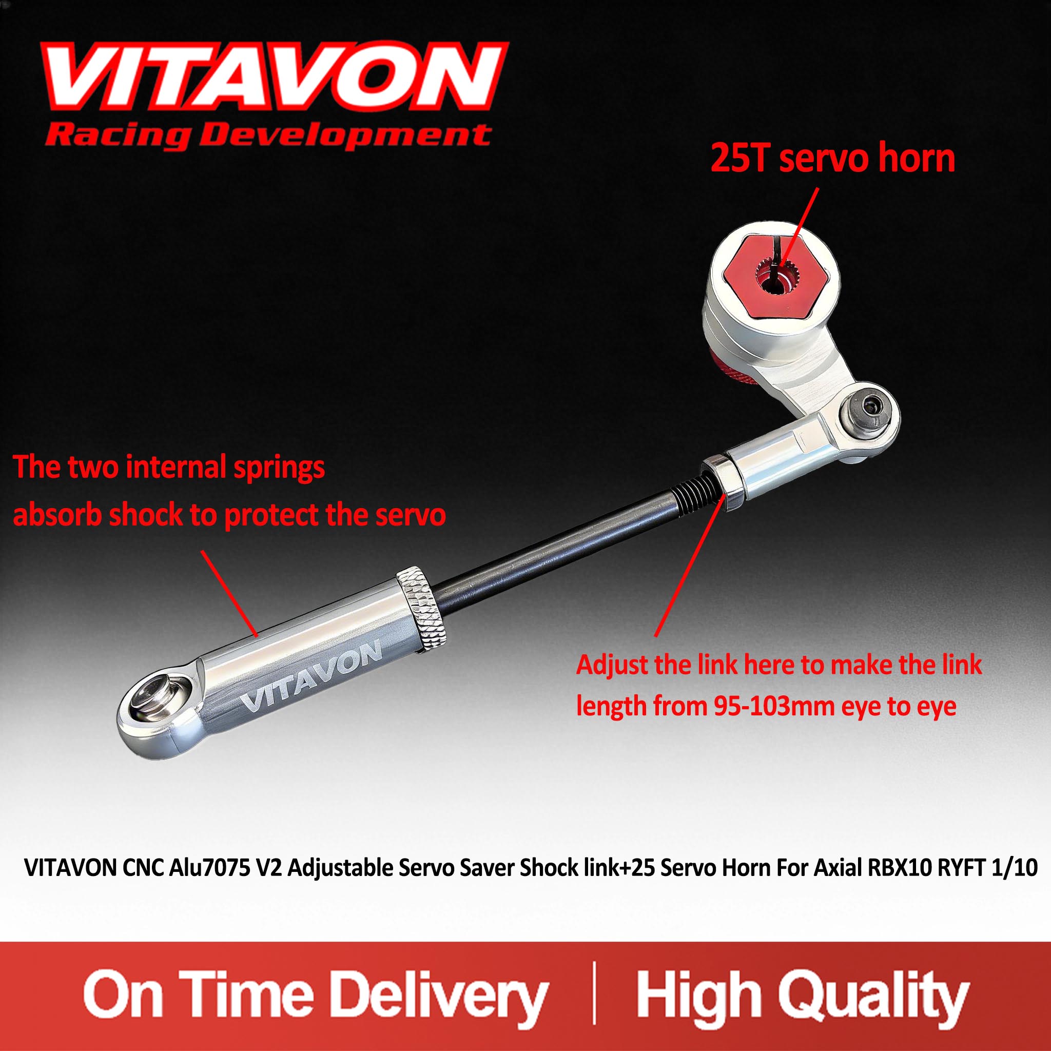 Product Name: VITAVON CNC Aluminum 7075 Servo Saver (25T) + Link for Axial RBX10 Ryft 4WD Bouncer 1/10