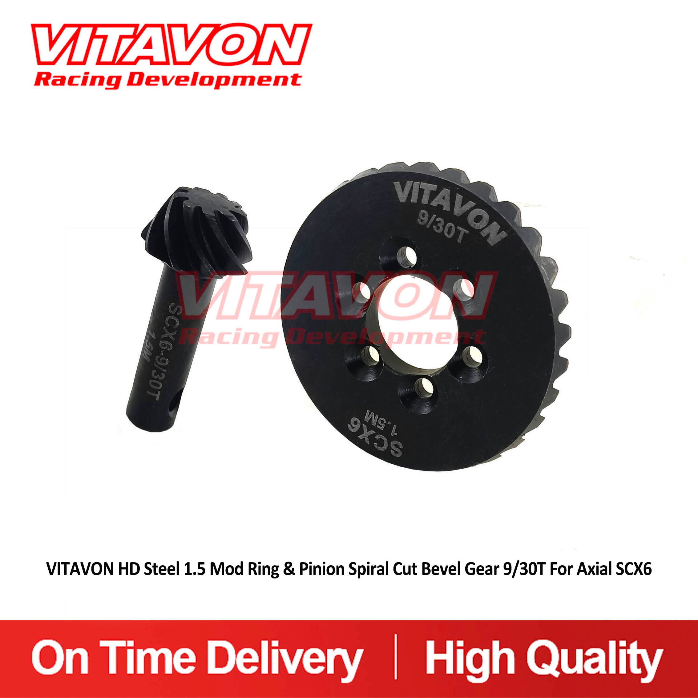 Product Name :VITAVON HD Steel 1.5 Mod Ring & Pinion Spiral Cut Bevel Gear 9/30T For Axial SCX6